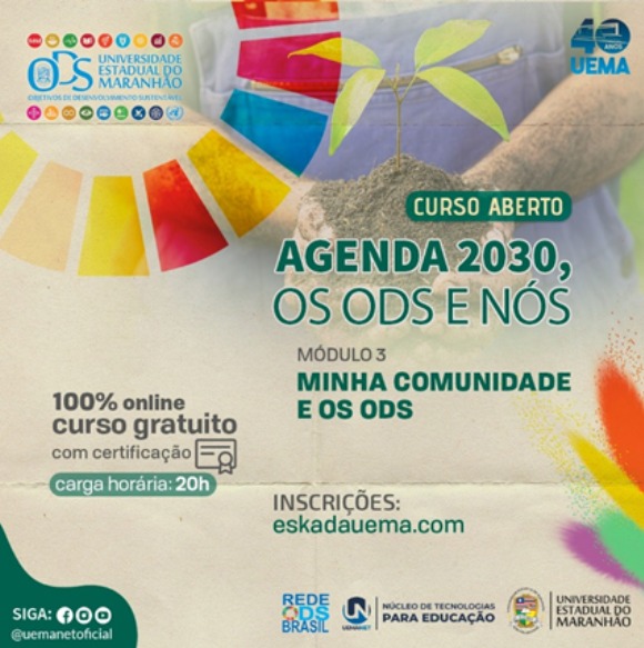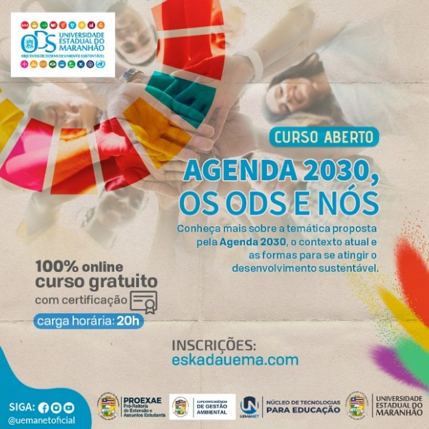 O curso Agenda 2030, os ODS e Nós, promovido pela Universidade Estadual do Maranhão, se propõe contribuir com a divulgação da Agenda 2030 e a aceleração global na implementação dos Objetivos de Desenvolvimento Sustentável – ODS.