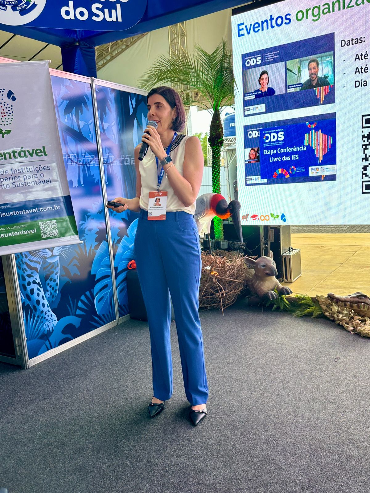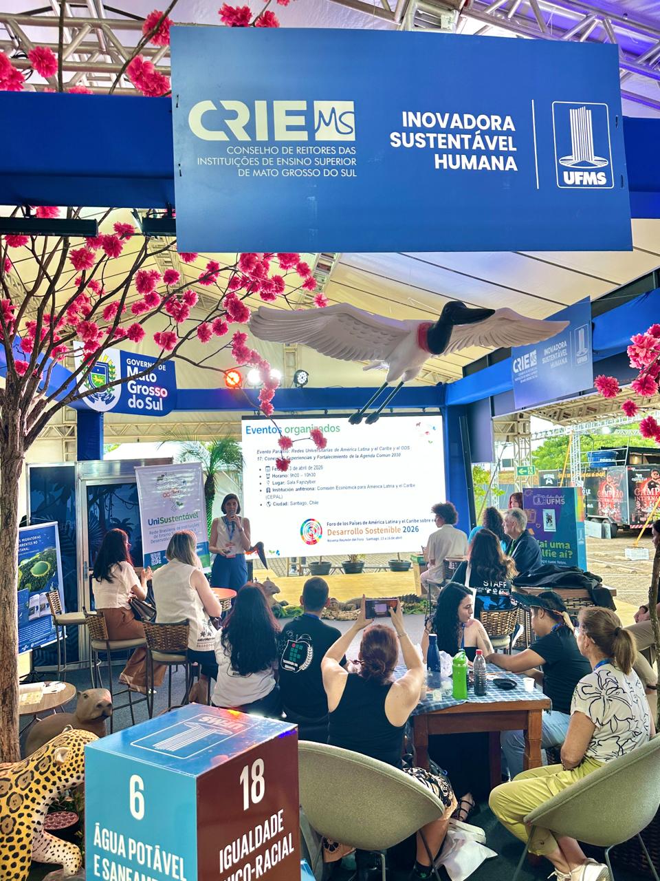 A participação ocorreu no dia 27 de março, no estande do Conselho de Reitores de Instituições de Ensino Superior de Mato Grosso do Sul (Crie/MS), organizado em parceria com a Universidade Federal de Mato Grosso do Sul (UFMS) e o Governo do Estado de Mato Grosso do Sul, reunindo representantes acadêmicos, gestores públicos e participantes internacionais da conferência.