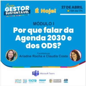 A Assessoria Especializada na Articulação dos ODS e a Pró-Reitoria de Gestão de Pessoas – PROGEP realizaram um workshop de lançamento, no dia 13 de abril de 2022, de um curso especificamente direcionado à temática do Gestor Sustentável.